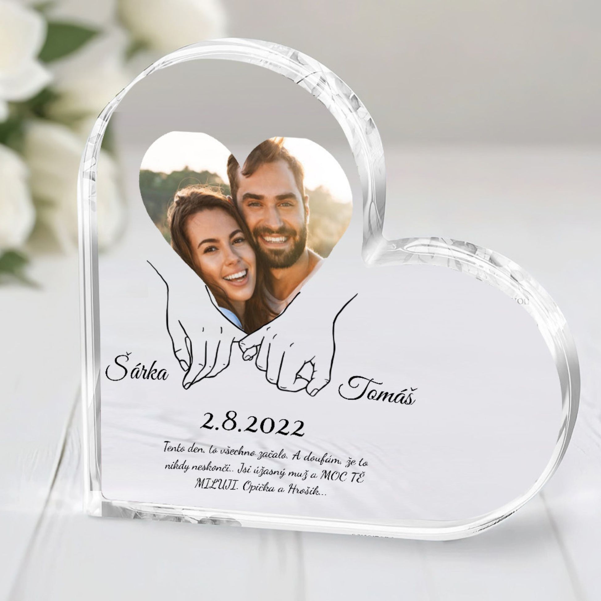 Lucie Č. Akrylový plak - Spojené ruce + Foto + Sada 2 hrnky ZDARMA
