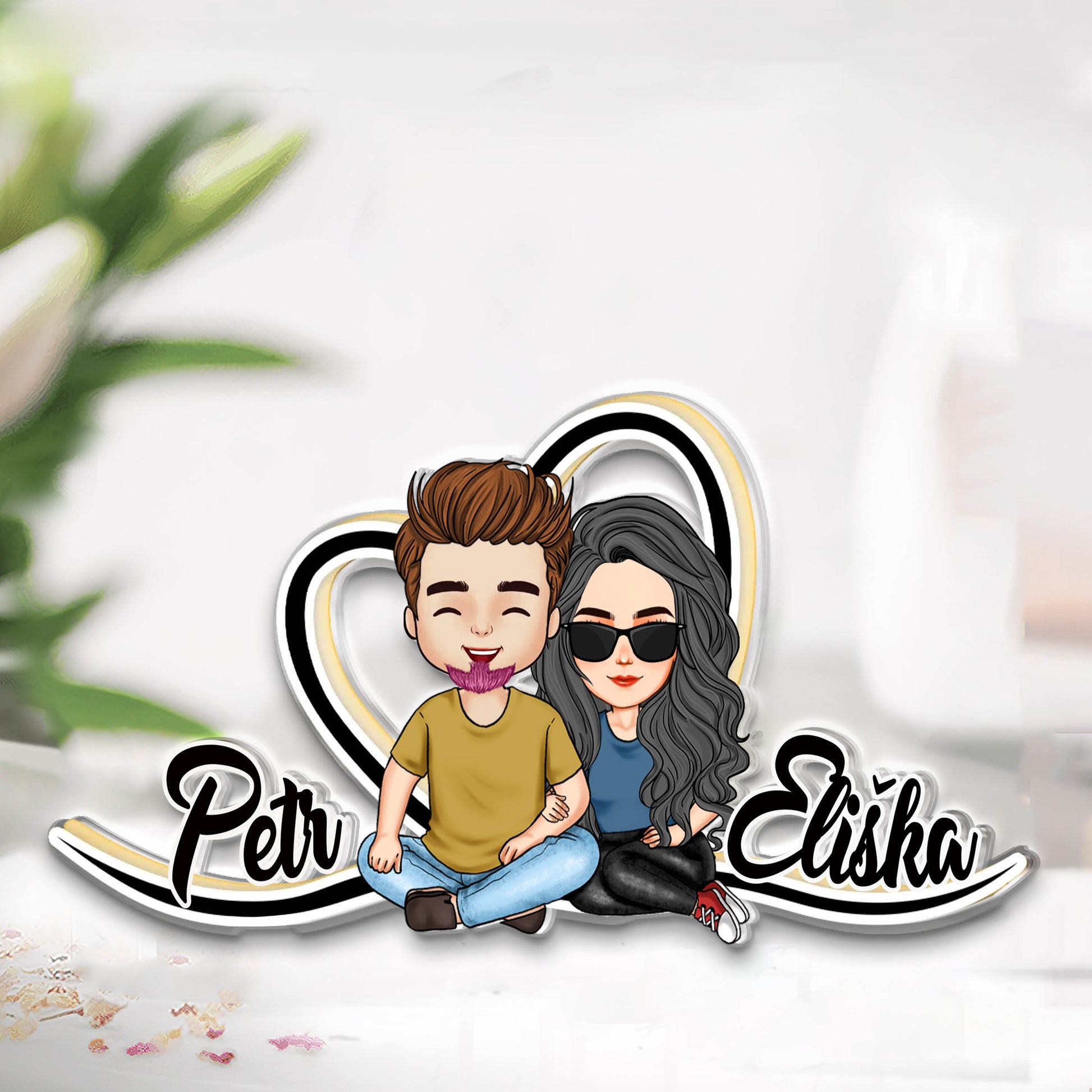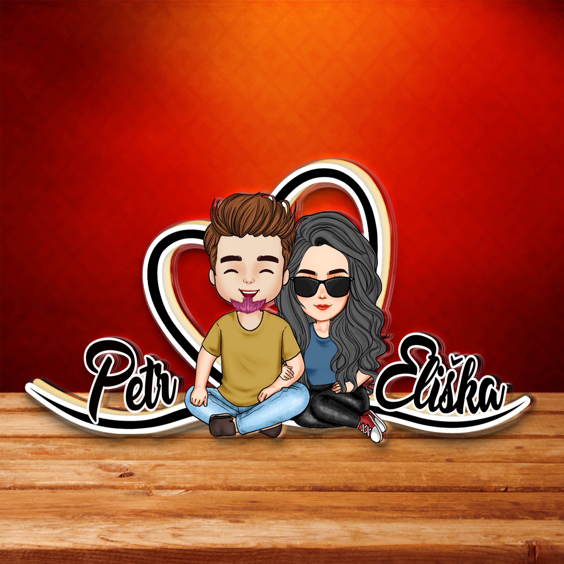 Akrylový plak - Srdce s jmény páru